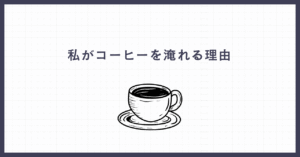 大学2年の頃、コーヒーの香りがふわっと広がる時間が好きになり、ハンドドリップでコーヒーを淹れるようになりました。それが一日のリズムを整えているようで、一番の趣味となっています。